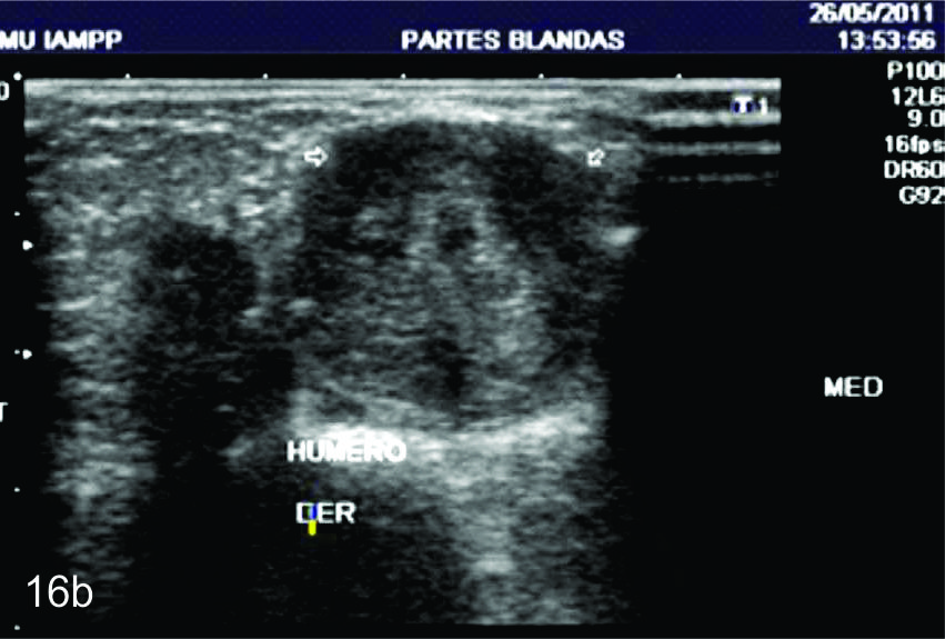 Todos las imágenes aquí mostradas son de pacientes vistos en la consulta (Hospital de Clínicas, CASMU, consulta particular) por el autor en el periodo entre el año 2012 y el 2017. En todos ellos el primer estudio de imagen realizado fue la ecografía el cual realizó el diagnóstico.