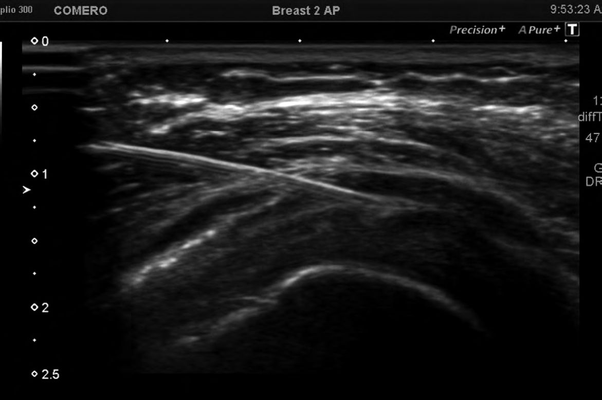 Tomohisa Hashiuchi. Comparative survey of pain-alleviating effects between ultrasound-guided injection and blind injection of lidocaine alone in patients with painful shoulder. Arch Orthop Trauma Surg. July 2010, 130(7):847-852.