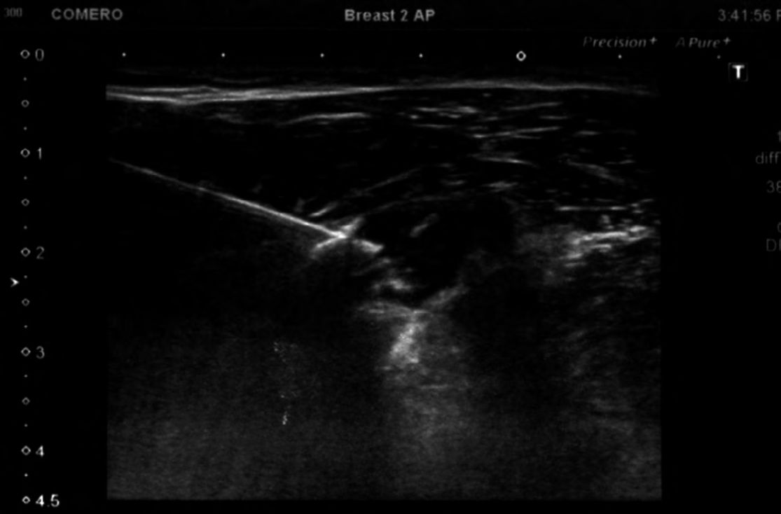 El trayecto de la aguja es el correcto, desde el sector lateral al medial,