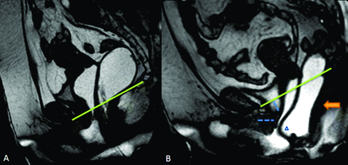 Materials and methods: We retrospectively reviewed 16 MRI scans of female patients, performed at the HC Imaging service. The protocol used consisted of morphological sequences FSE T1 axial, T2 high resolution in the three planes and dynamic sequences TRUE FISP in the sagittal plane in the midline, during rest, contraction of the pelvic muscles, Valsalva maneuvers and defecation.