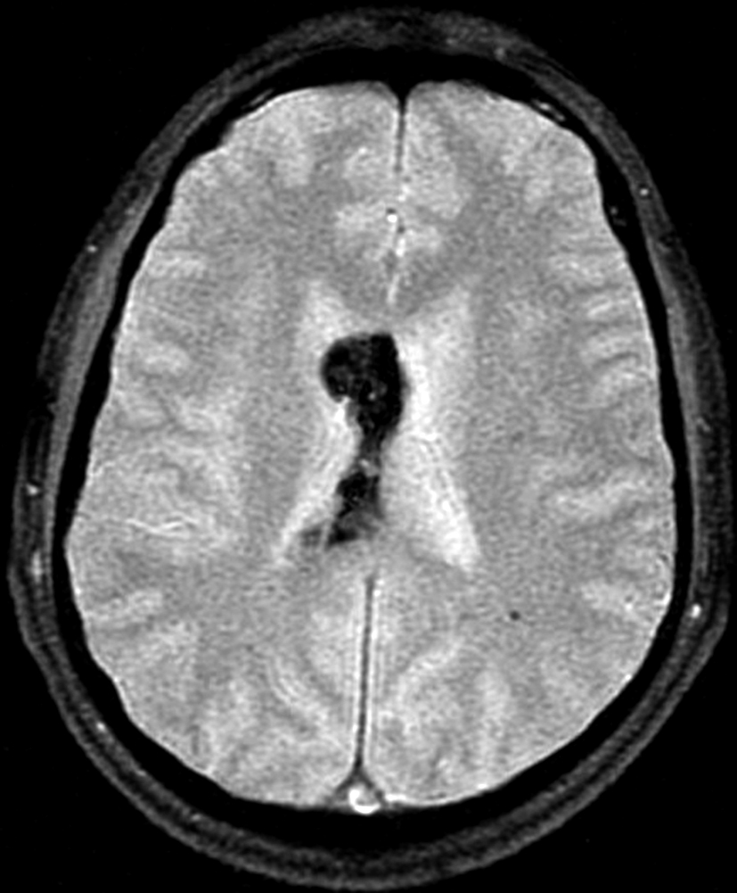 El diagnóstico se puede hacer en la RM basado en la morfología característica y la presencia de productos sanguíneos crónicos. La secuencia ecogradiente es muy sensible para demostrar el efecto de susceptibilidad de la hemosiderina, identificar la multiplicidad de la lesión y por lo tanto apoyar el diagnóstico de cavernoma intraventricular. A pesar de raros, los cavernomas deben formar parte del diagnóstico diferencial de las lesiones intraventriculares, pues el diagnóstico equivocado puede llevar al tratamiento inapropiado de estas lesiones benignas.