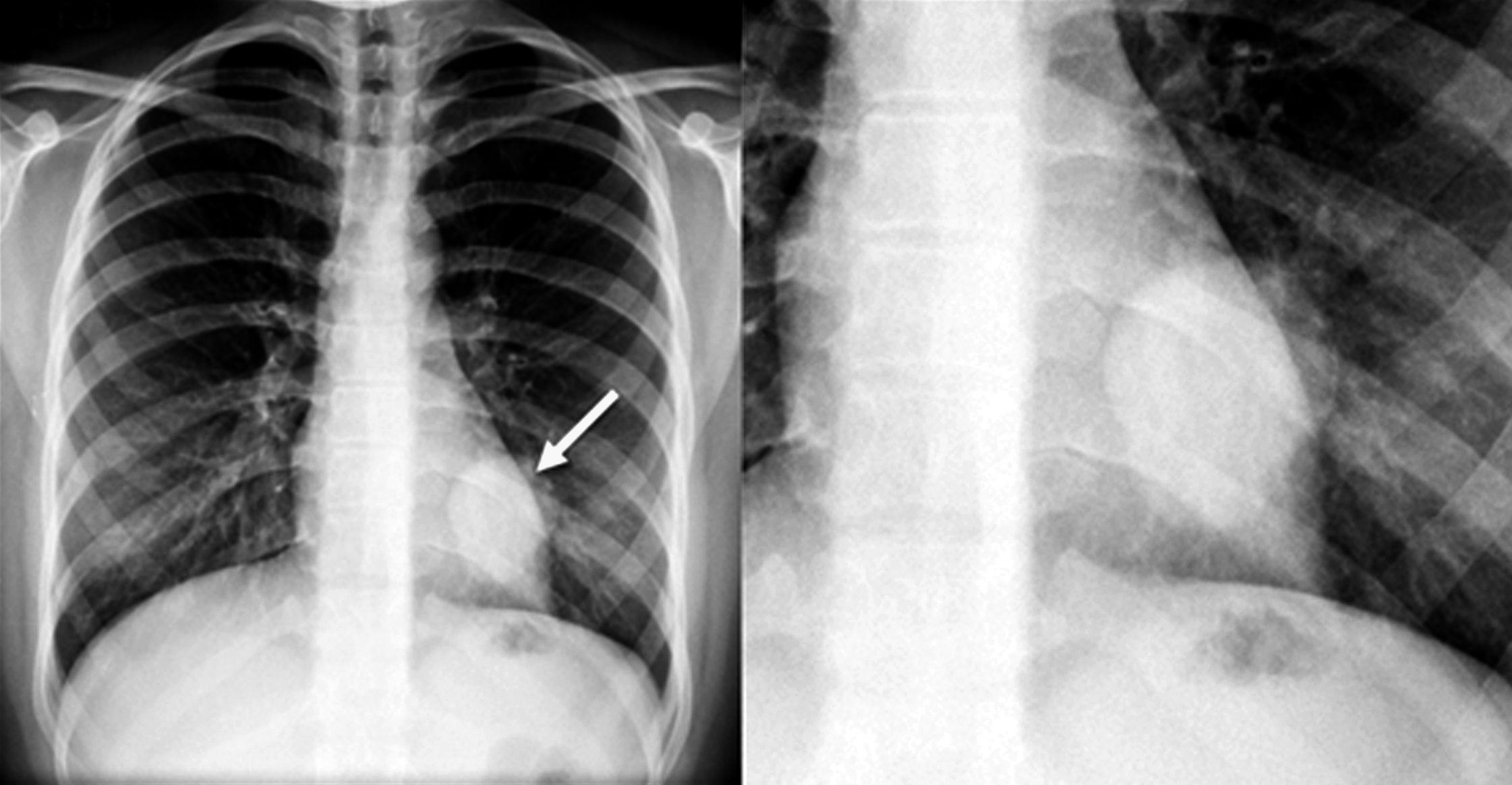 retrocardíaca, redondeada, de bordes bien definidos, de