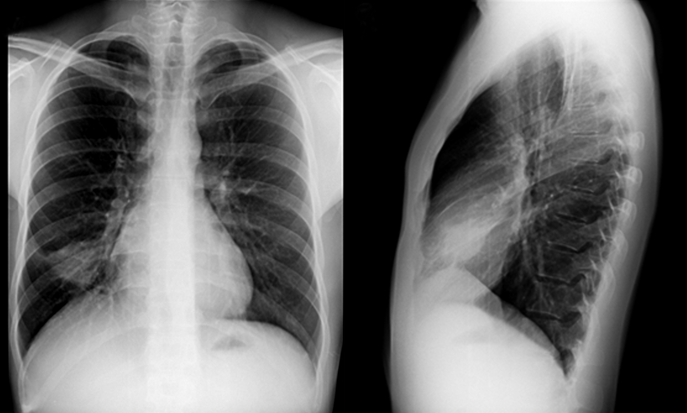 Se solicita radiografía de tórax de frente, en la cual se