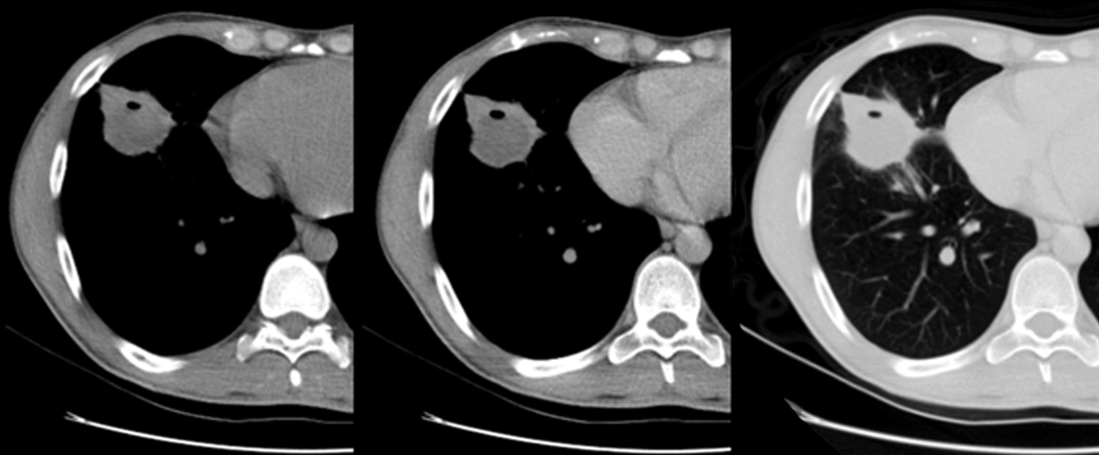 computarizada de tórax. Se realizan adquisiciones sin y