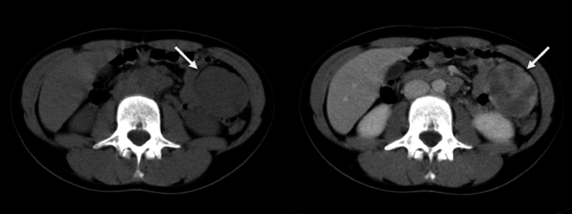 en exploraciones sin contraste y se han observado calcificaciones