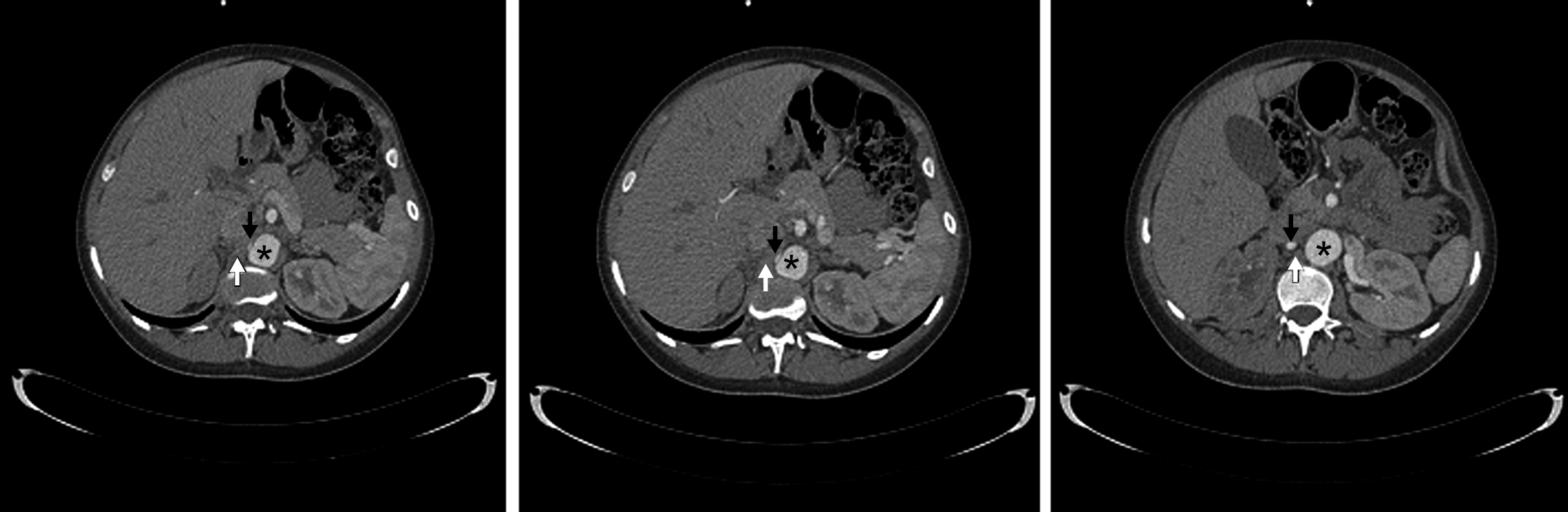 la arteria renal o la presencia de una crura diafragmática