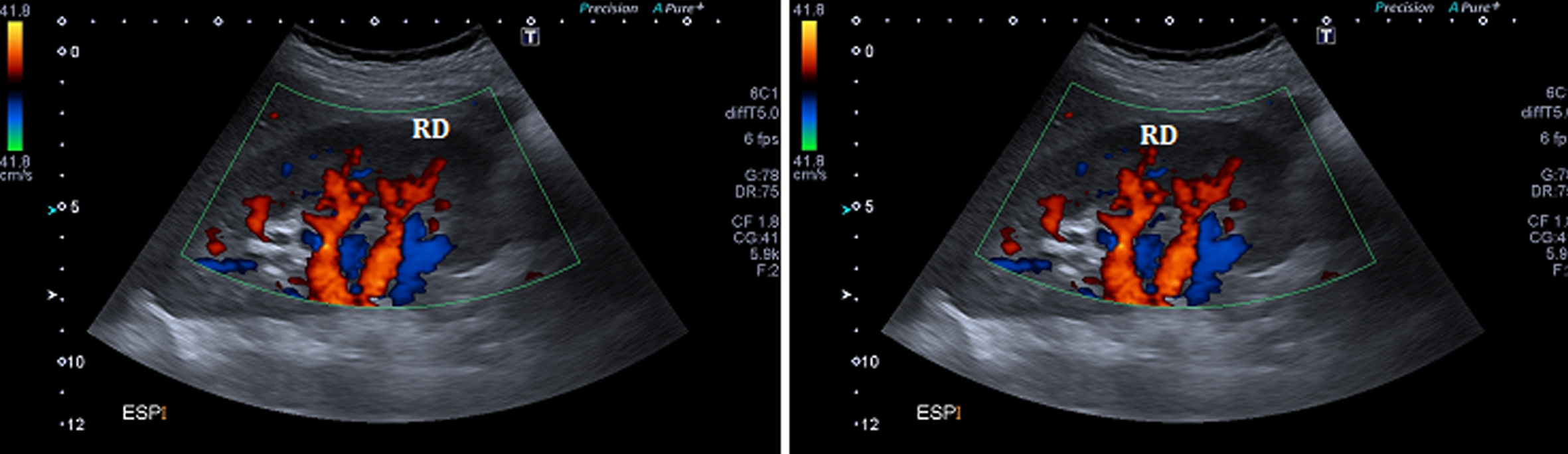 del flujo sanguíneo tanto en la arteria renal como
