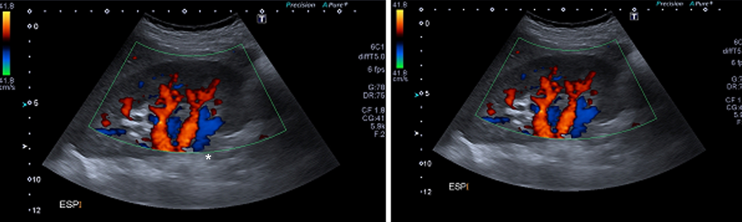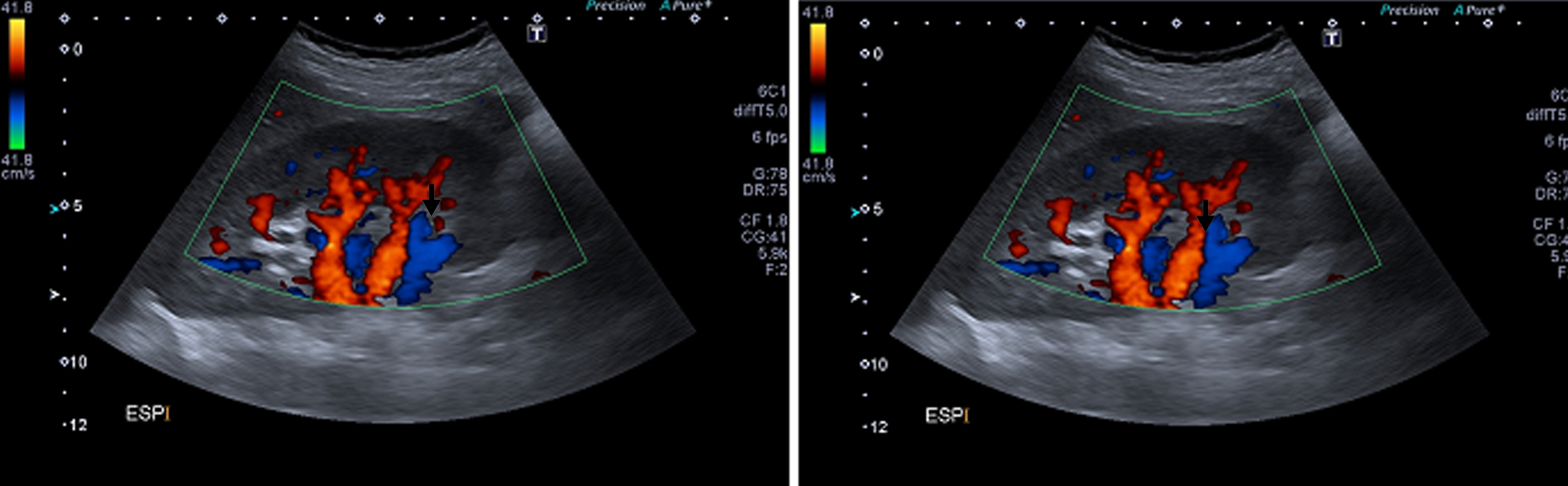 velocidades de flujo de la arteria renal “atrapada” durante